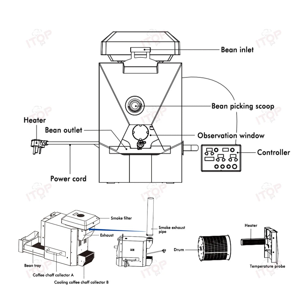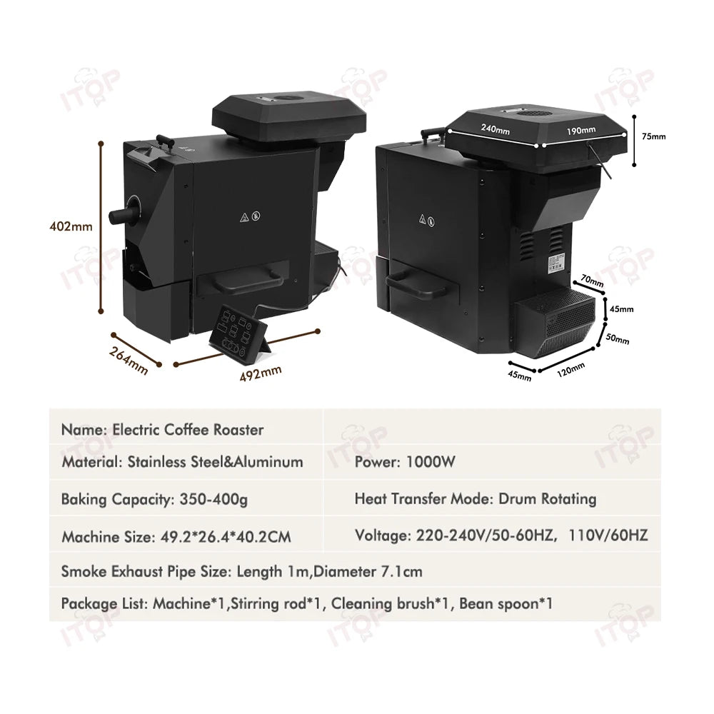 Tipo: Tostadora de tambor con calefactor eléctrico de 1000W