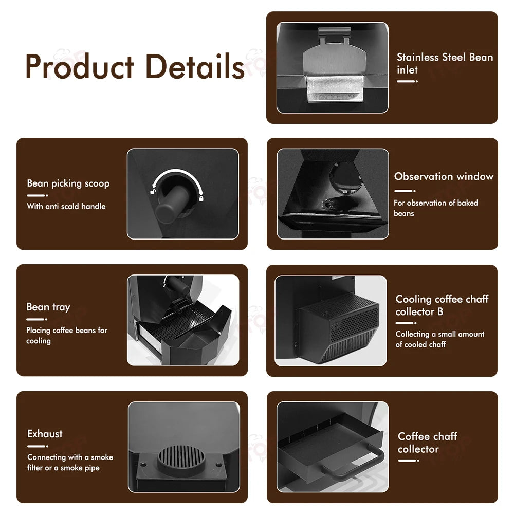 Con su diseño compacto, control intuitivo y tres modos de tueste, puedes explorar el mundo del café de especialidad sin complicaciones. Además, su sistema de supresión de humo permite usarla en espacios ventilados, sin necesidad de instalaciones complejas.